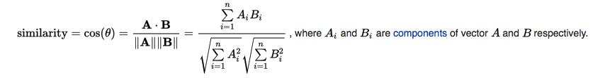코사인 유사도 방식은 평점들을 '벡터'로 생각하고 2개의 각 벡터사이의 각도를 '유사도'라고 가정하는 방법입니다. 즉, 둘 사이의 벡터의 각도가 가까울때 비슷한 아이템 or 사용자라고 판단하게 됩니다. 코사인 유사도의 단점은 정보(데이터)가 많지 않을 때에는 예측의 정확도가 높지 않다는 것이다.